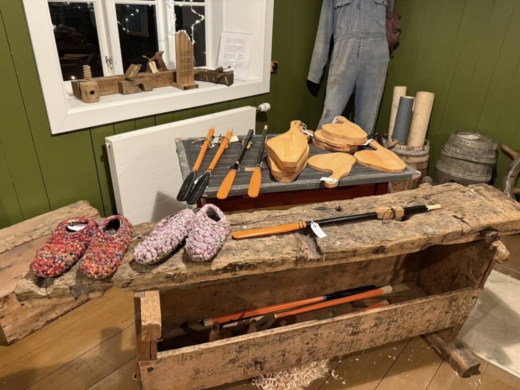 Á loftinum angar so væl av nýbakaðum, tí har er Jólacafe , har eru nýbakaðar vaflur, kaffi, te, kaka og fiskasúpan til keyps.