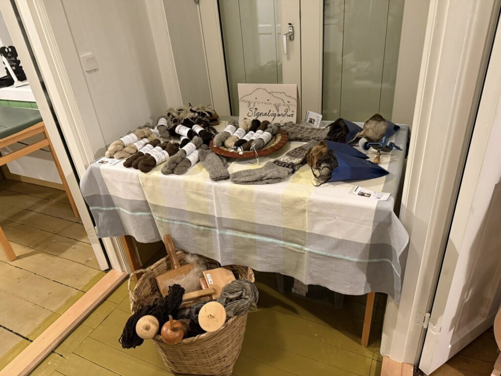 Tað er sera áhugavert at síggja hvussu nógv dugnalig fólk eru í bygdini, á livandi verkstaðnum skiftast nakrir av útstillarunum, at koma at vísa teirra kinstur, har hevur verið t.d. bundi, perla, orkera, telgt, tóltra, kæra og spunni.