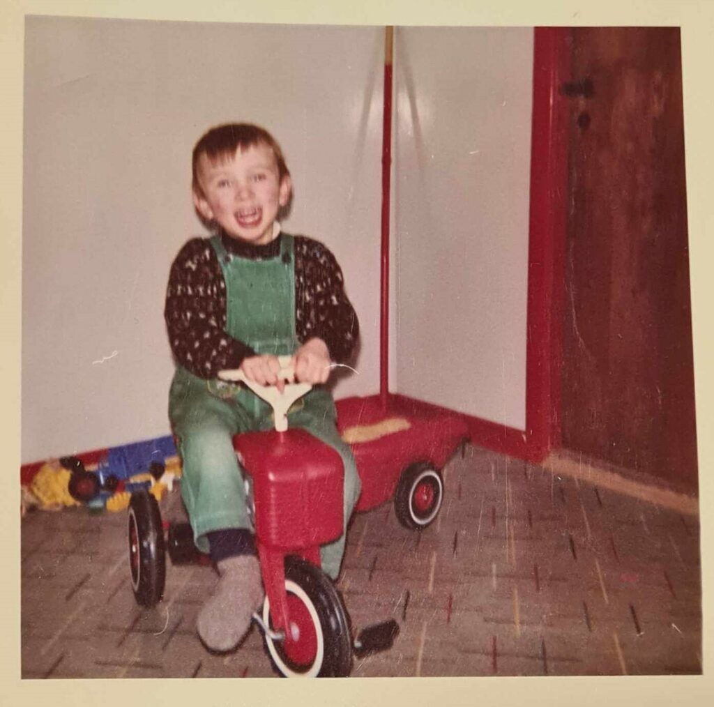 Tað var tíðliga í desembur fyri 50 árum síðani, at mamma og er fóru inn til Børga at keypa. Vit høvdu ikki veri har leingi, tá eg rakti við ein stóran reyðan traktor við vogni uppi á ovastu hyll, langt langt har uppi. Eg síggi tað fyri mær enn, alt var so høgt tá. Sjálvandi vildi eg hava traktorin, men mamma segði at hann var alt ov dýrur. Traktorurin hvarv ikki úr mínum høvdi. Hvørja fer vit vóru og keyptu, hugdi eg uppá ovastu hyll við stórum eygum. So ein dagin, vit vóru hjá Børga var traktorurin burtur, onkur hevði keypt hann!!! Mamma, onkur hevur keypt traktorin rópti eg harmur. Nú var eg vísur í at eg ikki kundi fáa hann. Tíðin leið og jólini vóru í hondum. Eg hugsaði ikki longur um traktorin, hann var sum man sigur “avskrivaður”. So kom jólaaftan, tað var so leingi at bíða. Fyrst skuldu vit eta døgura ræstan fisk og speril. So aftur at bíða. Systrarnar settu jóla træðið upp og so fóru vit í kirkju. Komin úr kirkju ótu vit nátturða. Og endiliga fóru vit at pakka jóla gávur upp. Eg minnist ikki hvat eg fekk, men tá ongin gáva var eftir, fór babba út og kom aftur við tveimum risa stórum pakkum. Tá var frøði, tí har í var tann reyði traktorurin við vogni.